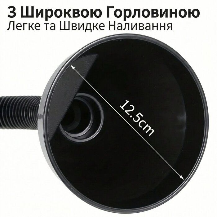 - Чистота процесу: Завдяки гнучкому шлангу та широкому розтрубу ризик проливання рідини зведений до мінімуму.