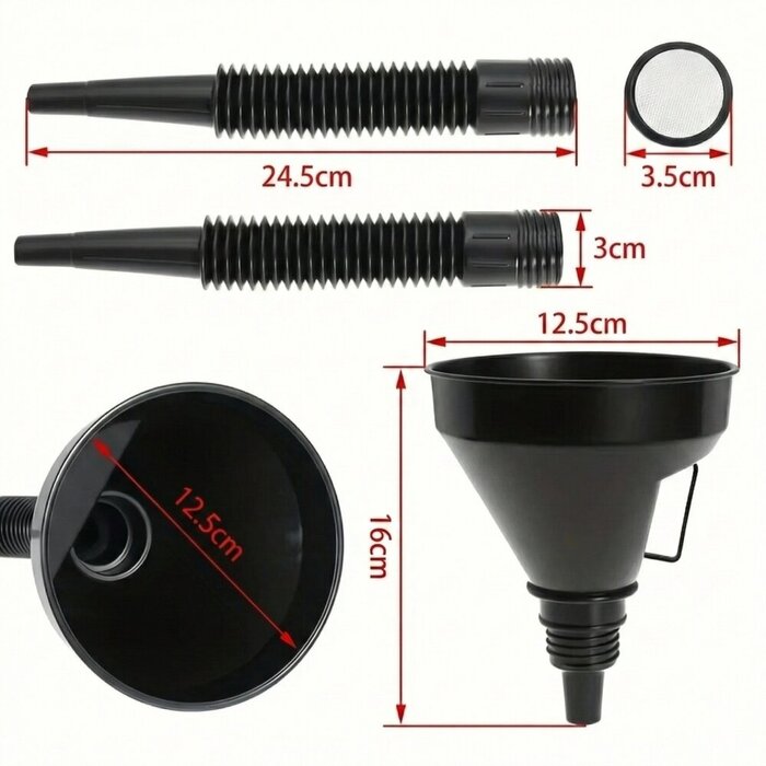 Опис Автомобільні лійки Гнучка автомобільна лійка SEMI для палива чи олії з фільтром, Black Black