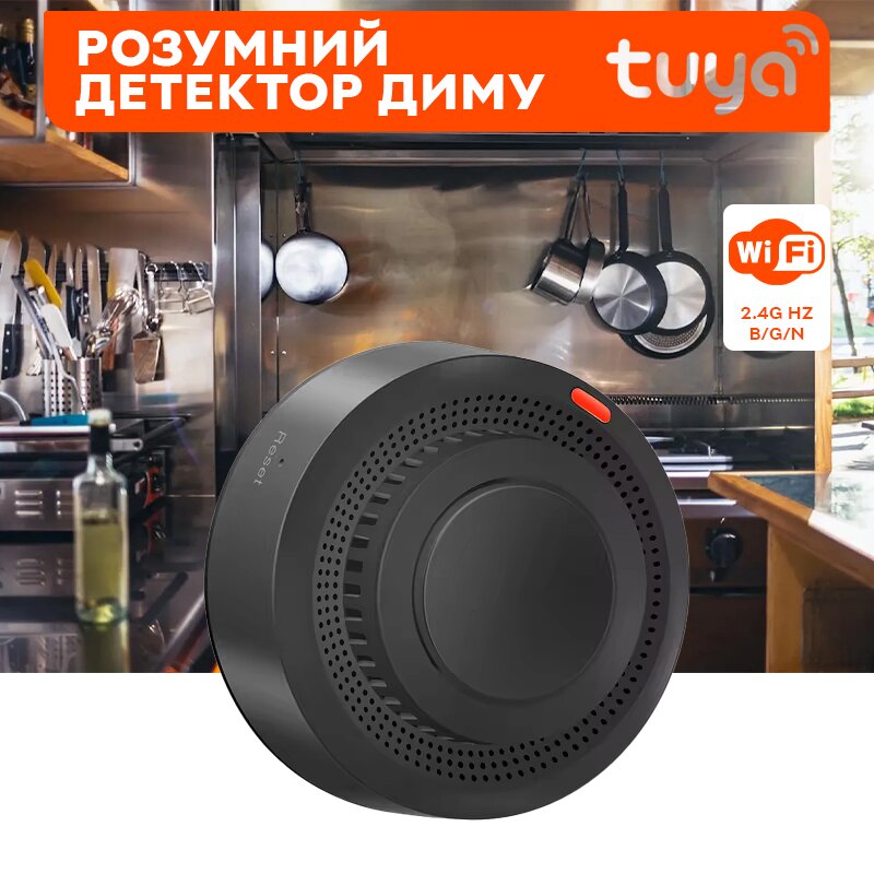 Wifi датчик диму Tuya Smoke Detector – це датчик диму, що працює через Wi-Fi з можливістю виявлення диму в приміщенні, вбудованою сиреною та повідомленнями на смартфон.